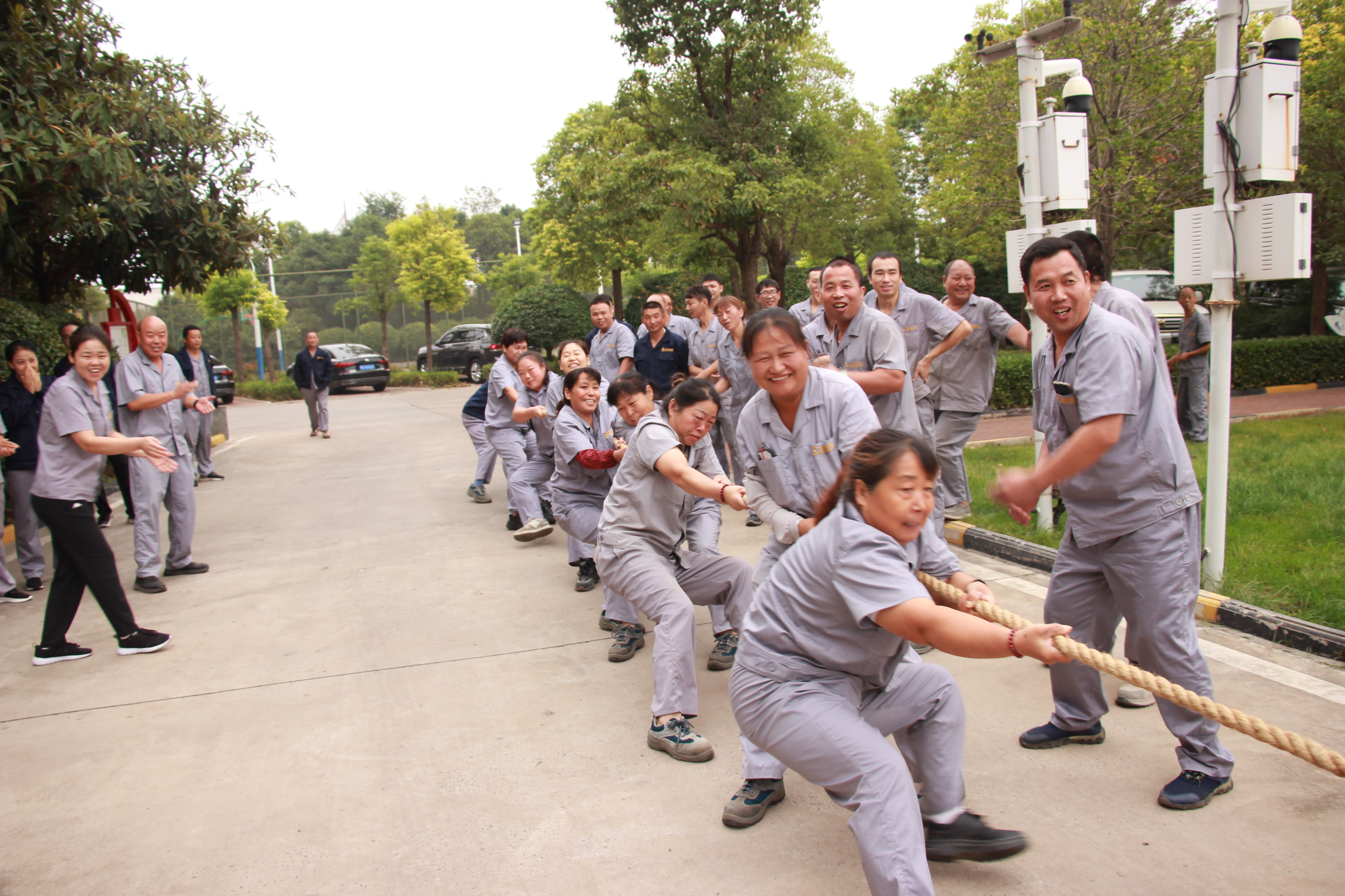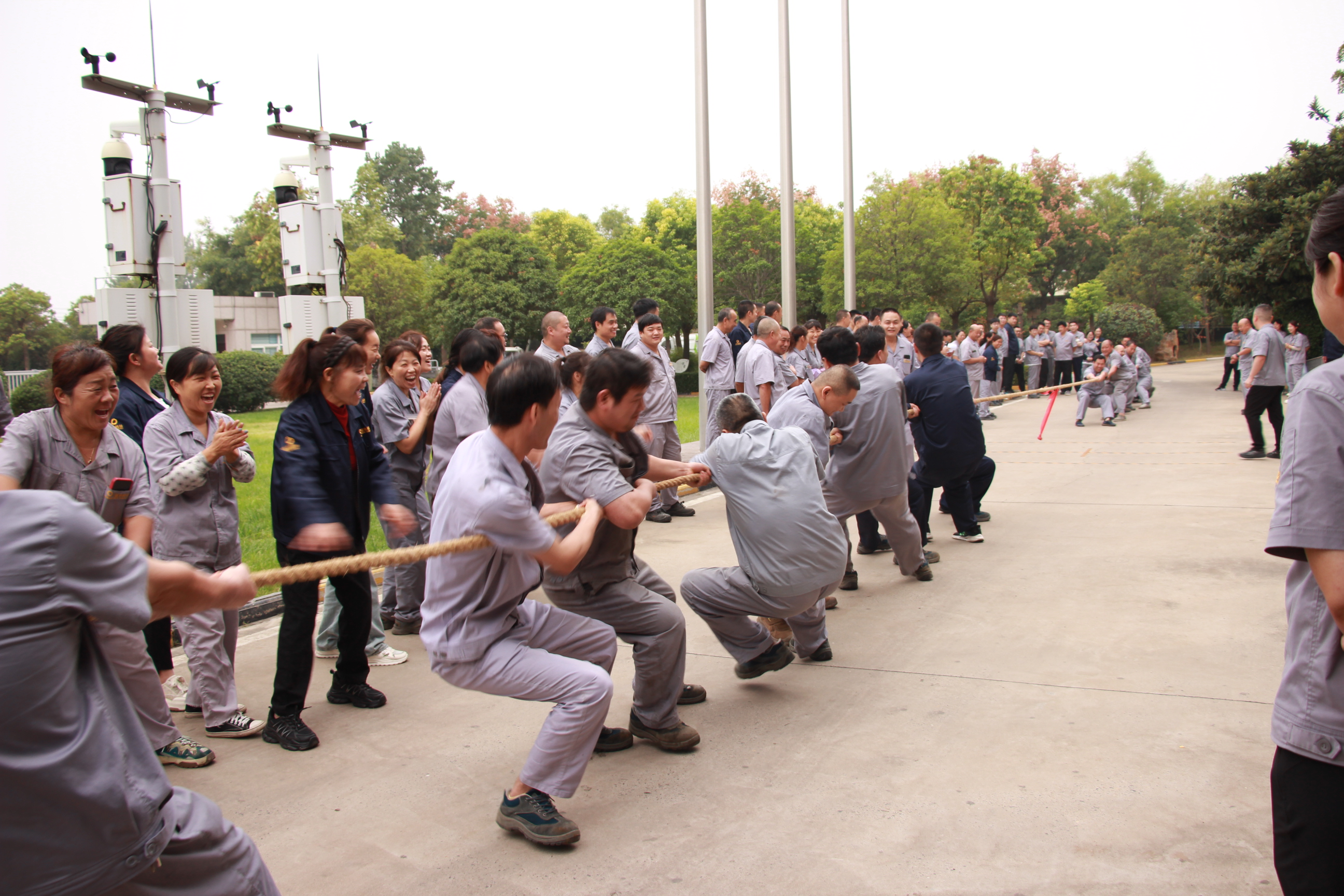 首先,一場激情澎湃的拔河比賽在這里精彩上演。賽場上,各參賽隊伍精神抖擻、斗志昂揚。隊員們摩拳擦掌,躍躍欲試。隨著裁判的一聲哨響,比賽正式開始。雙方隊員緊握繩索,腳蹬地面,身體后傾,齊心協(xié)力往后拉?,F(xiàn)場氣氛緊張而熱烈,加油聲、吶喊聲此起彼伏,震耳欲聾。