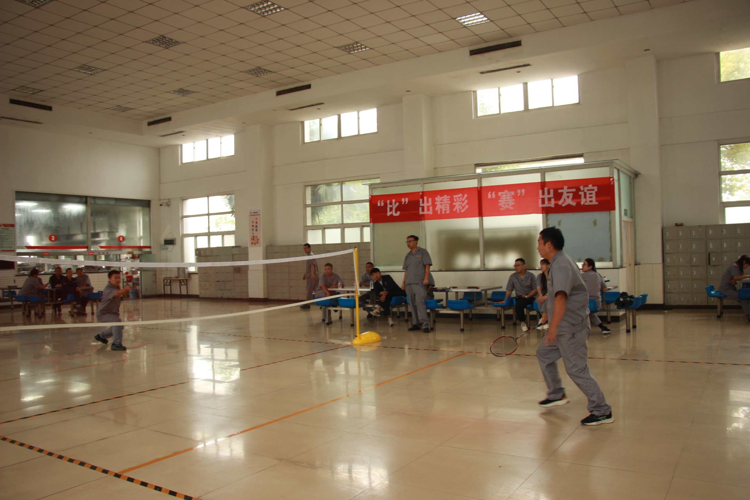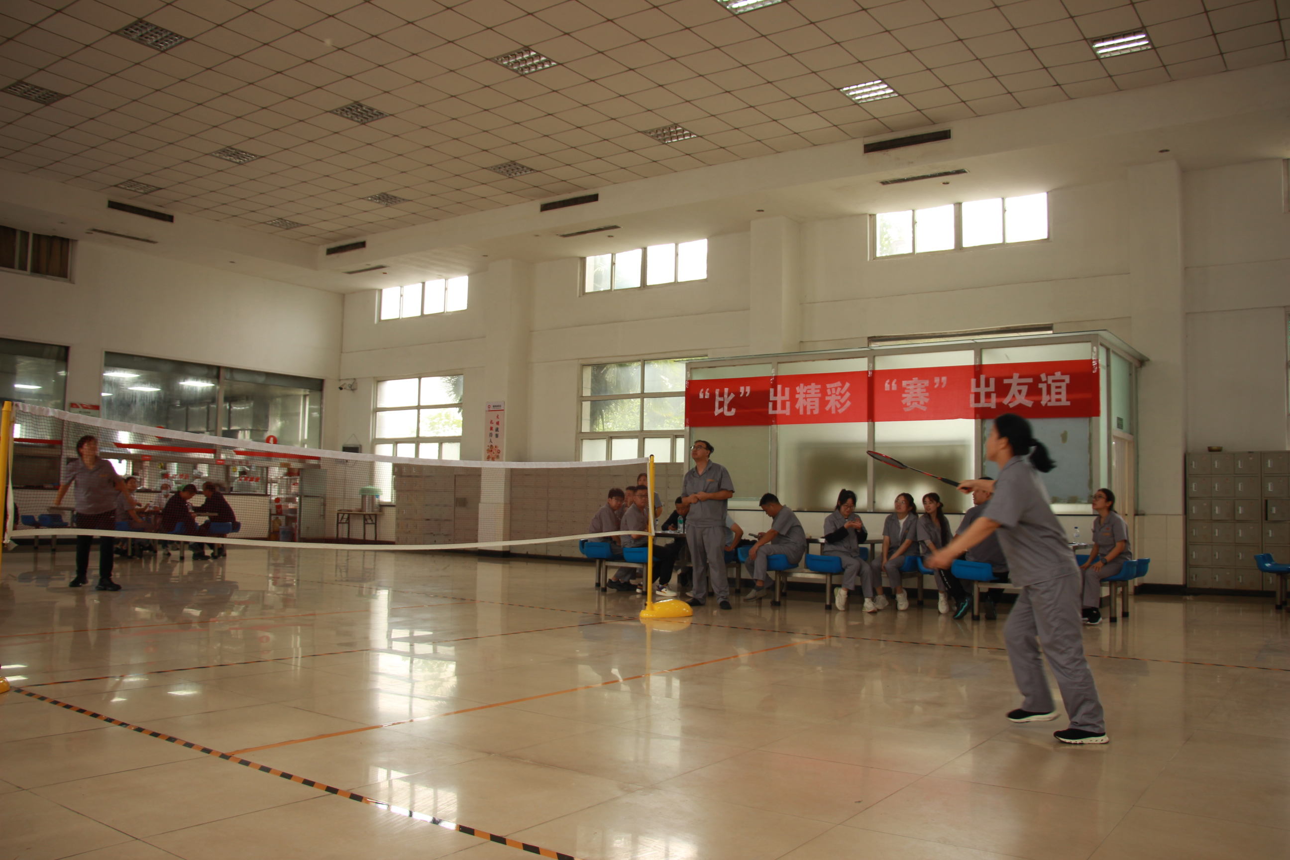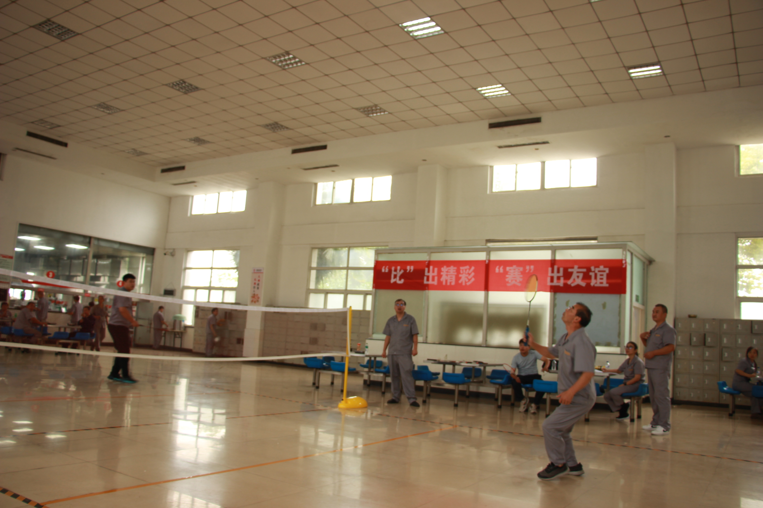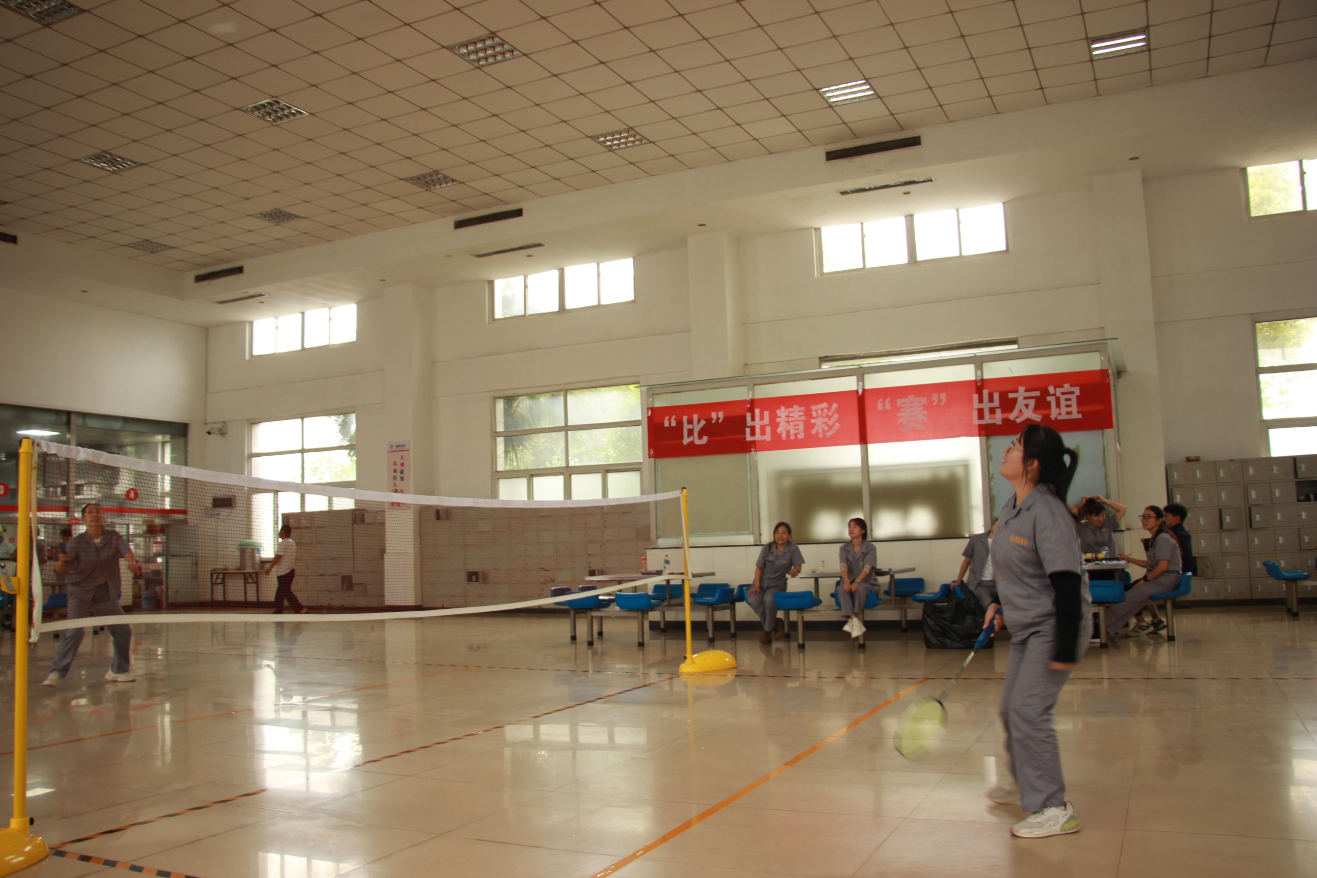 緊接著,一場精彩紛呈的羽毛球比賽熱烈開賽。賽場上,選手們個個精神飽滿、斗志昂揚。他們手持球拍,眼神堅定地注視著對手。隨著裁判的一聲哨響,比賽正式開始。白色的羽毛球在空中飛舞,時而快如閃電,時而輕盈飄逸。選手們在場上奔跑、跳躍、揮拍,盡情展現(xiàn)著自己的高超球技。
